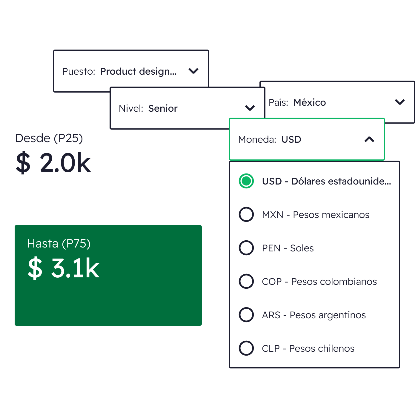 Llega a tu próxima conversación de sueldo con datos reales del mercado latinoamericano.